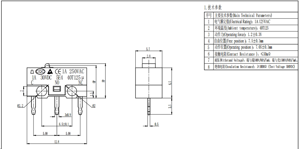 Ved å bruke en patentert hurtigutløsermekanisme er utløserens responstid ≤8ms, noe som forbedrer ytelsen med 25 % sammenlignet med tradisjonelle mikrobrytere. Utløservandringen er nøyaktig kontrollert mellom 0,3-1,0 mm, med et driftskraftområde på 1,5-4N. Den trykkende tilbakemeldingen er klar og skarp, uten å feste seg eller fritt spill, noe som gir presis kontroll av "lett berøring for å koble til, slipp for å bryte", perfekt egnet for scenarier som krever høy triggerfølsomhet. Kontaktene er laget av høyrent sølv-tinnlegering og behandlet med presis punktsveising, med en initial kontaktmotstand på ≤30mΩ. Den nominelle belastningen støtter 1A/250V AC og 3A/125V AC, og forhindrer effektivt kontaktoppvarming eller brenning når strømmen går gjennom.