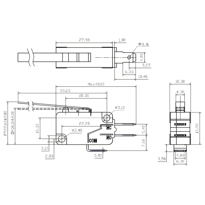 Millisekund-nøyaktig trigging: Bruker en hurtigmekanisme med hurtig bevegelse med en kort vandring på 0,5-1,6 mm og justerbar betjeningskraft på 0,25-4N, og gir rask og forsinkelsesfri respons for effektivt å forhindre "falske utløsere". Egnet for scenarier med høy presisjon som dørkontroller for mikrobølgeovner og industrielle sensorer.