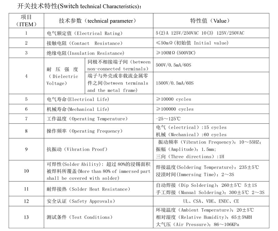 | 1 | Elektrisk vurdering | 5(2)A 125V/250VAC 10(3)125V/250VAC | |