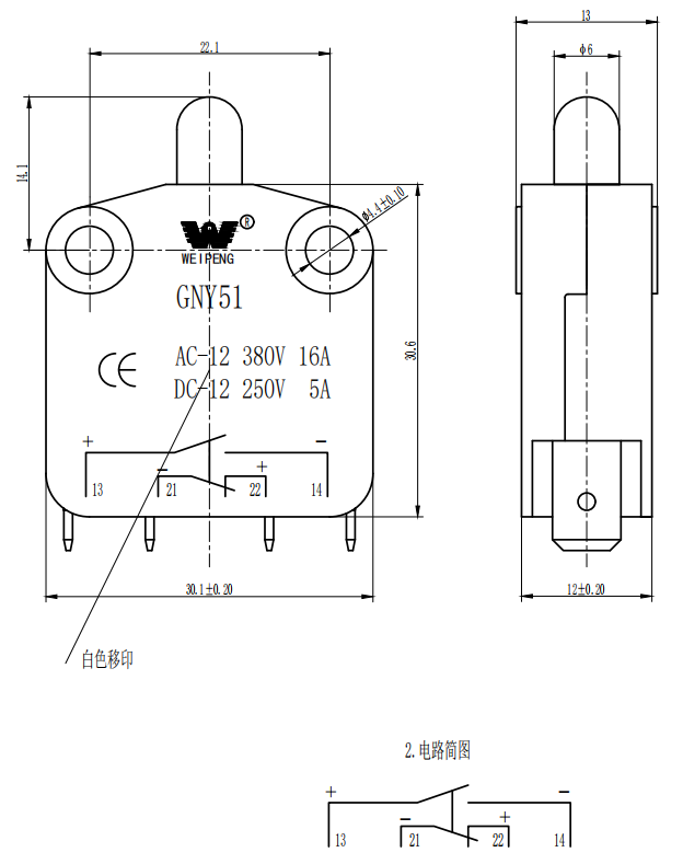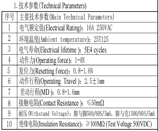 Plug -kolonne Type -knappemikrobryter i bildeler har et lite kontaktintervall og en rask handlingsmekanisme, og kontaktmekanismen for å bytte handling med det spesifiserte slaget og kraften er dekket av skallet, og det er en overføring på utsiden, og formen er liten.